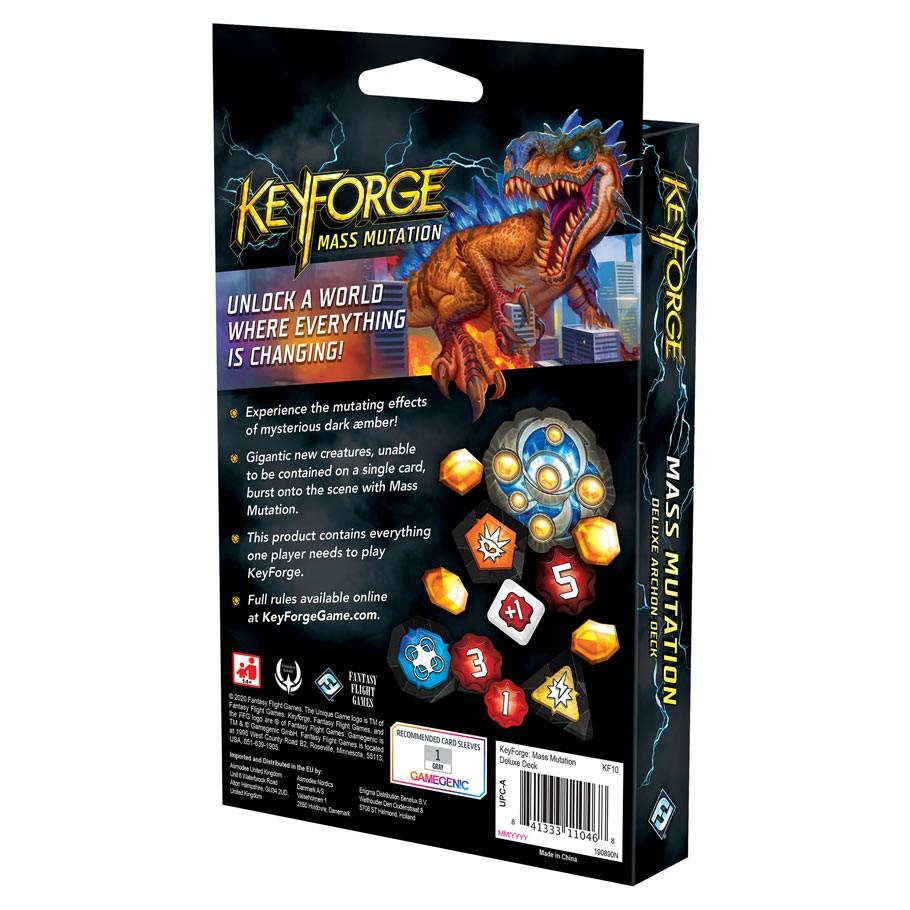 Each Mass Mutation Deluxe Deck contains a single, ready-to-play 36-card deck, bringing together three of the diverse Houses of the Crucible into a single deck—featuring its own mix of cards and unique from every other Archon Deck in existence. Additionally, each Deluxe Deck also contains all of the tokens that you need for a single player to start playing the game of KeyForge!